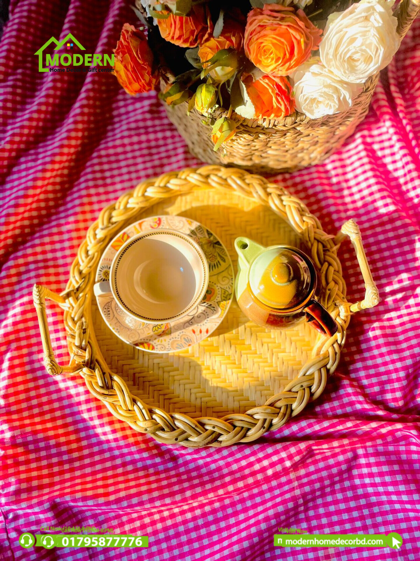 নিপুণ কারুকাজ: ট্রে-টির বর্ডারে অত্যন্ত সুন্দরভাবে বিনি তৈরি করা ডিজাইন (Braided Edge) করা হয়েছে, যা এর সৌন্দর্যকে বহুগুণ বাড়িয়ে দিয়েছে।