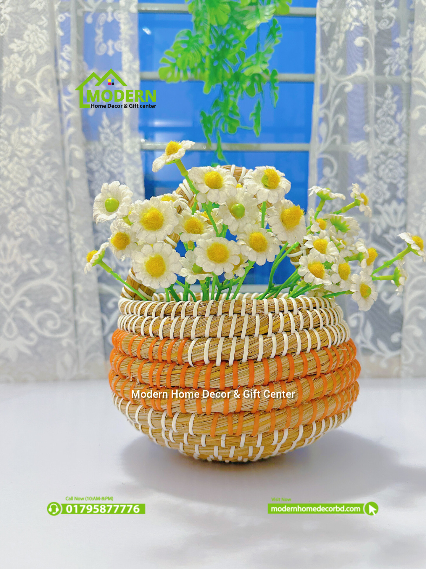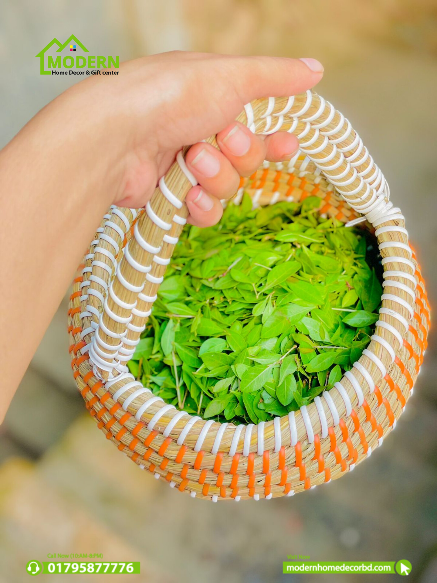 ডিজাইন: বাস্কেটটিতে সাদা এবং কমলা রঙের প্লাস্টিক র্যাপিংয়ের মাধ্যমে একটি নান্দনিক প্যাটার্ন তৈরি করা হয়েছে, যা একে আরও আকর্ষণীয় করে তুলেছে।