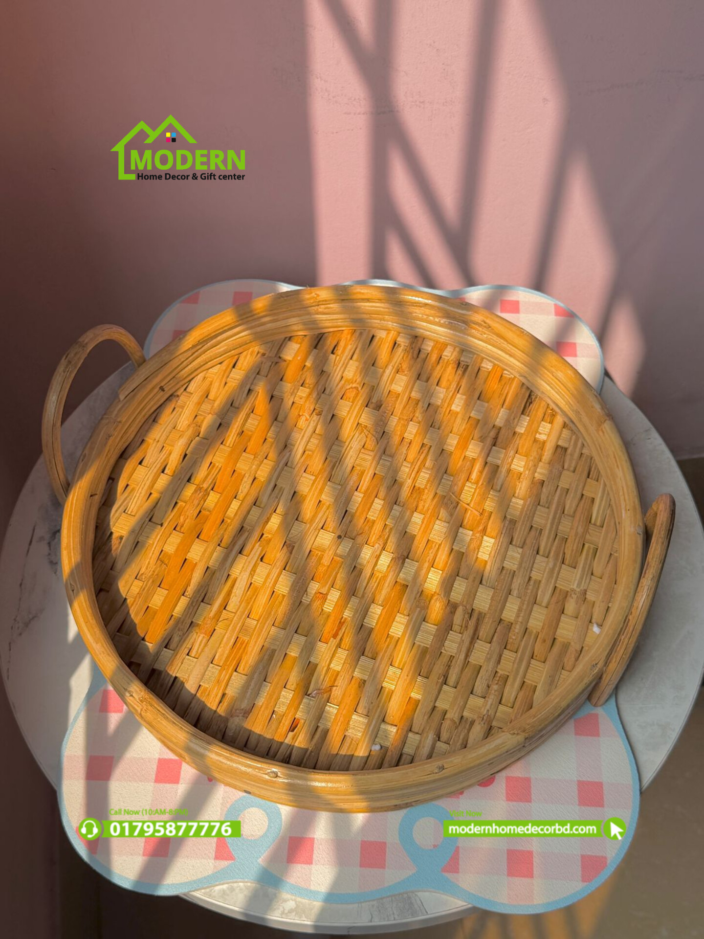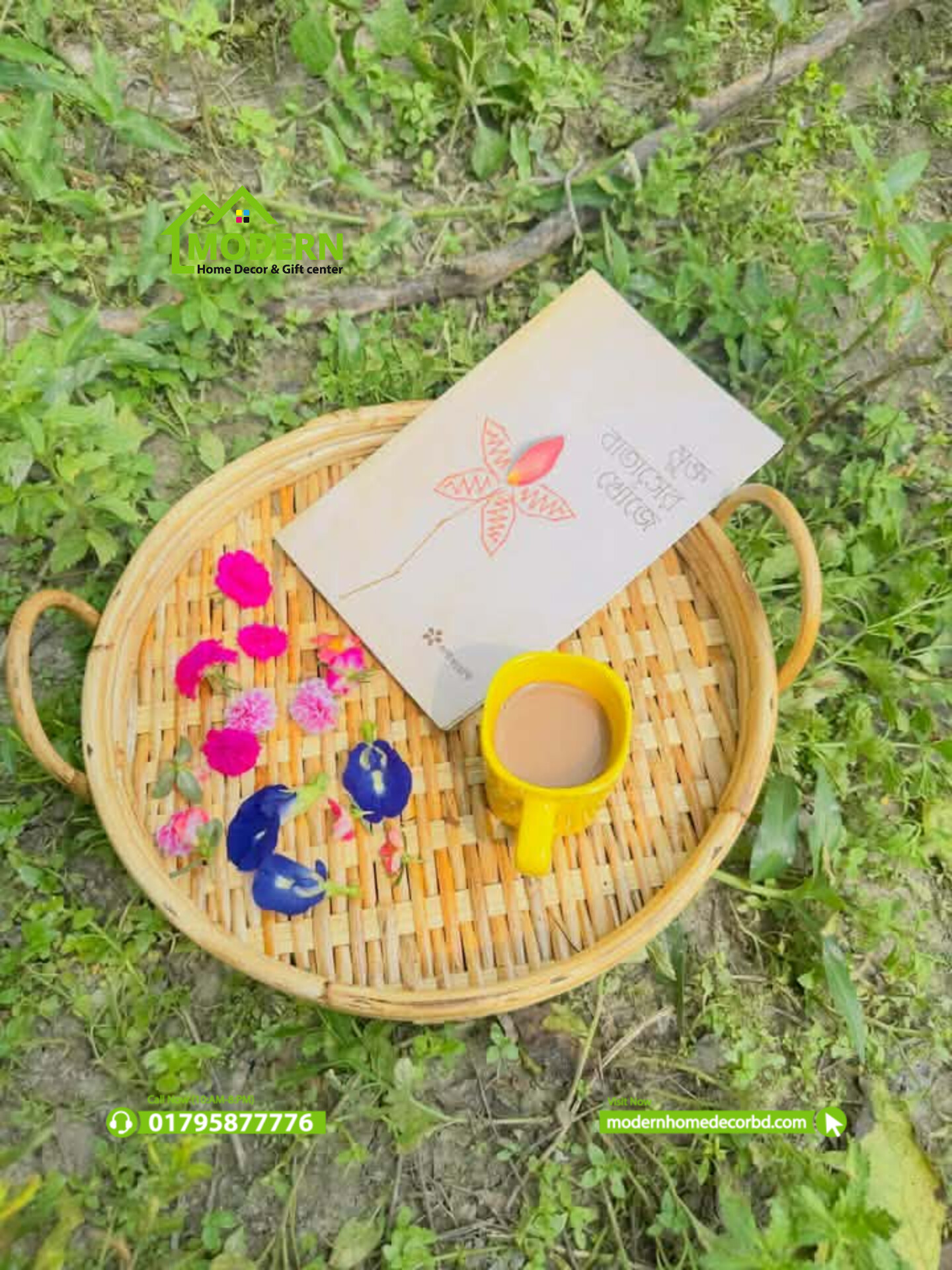 আপনার নিত্যদিনের পরিবেশনা বা ঘর সাজাতে আভিজাত্যের ছোঁয়া দিতে এই বেতের গোল ট্রে-টি হতে পারে একটি সেরা পছন্দ। সম্পূর্ণ প্রাকৃতিক বেত এবং বাঁশের নিপুণ সংমিশ্রণে তৈরি এই ট্রেটি আপনার অন্দরমহলে এক চিলতে গ্রাম বাংলার ঐতিহ্য নিয়ে আসবে।