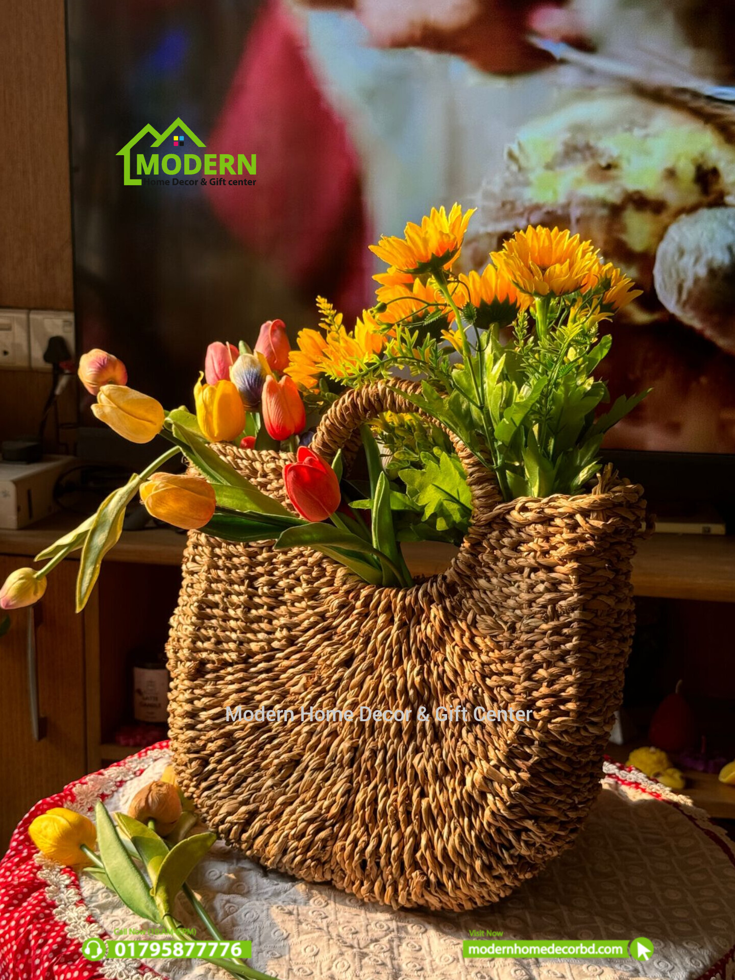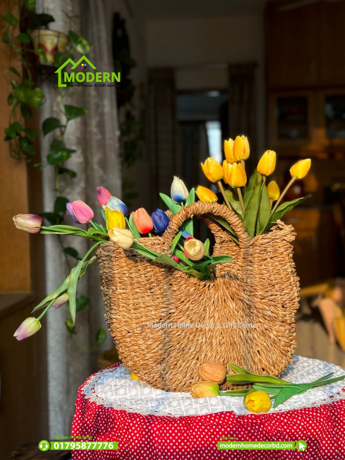 - ফ্লাওয়ার বাস্কেট: আপনি কৃত্রিম বা জীবন্ত গাছ ও ফুল দিয়ে ঘরের কোণ সাজাতে এটি ব্যবহার করতে পারেন।