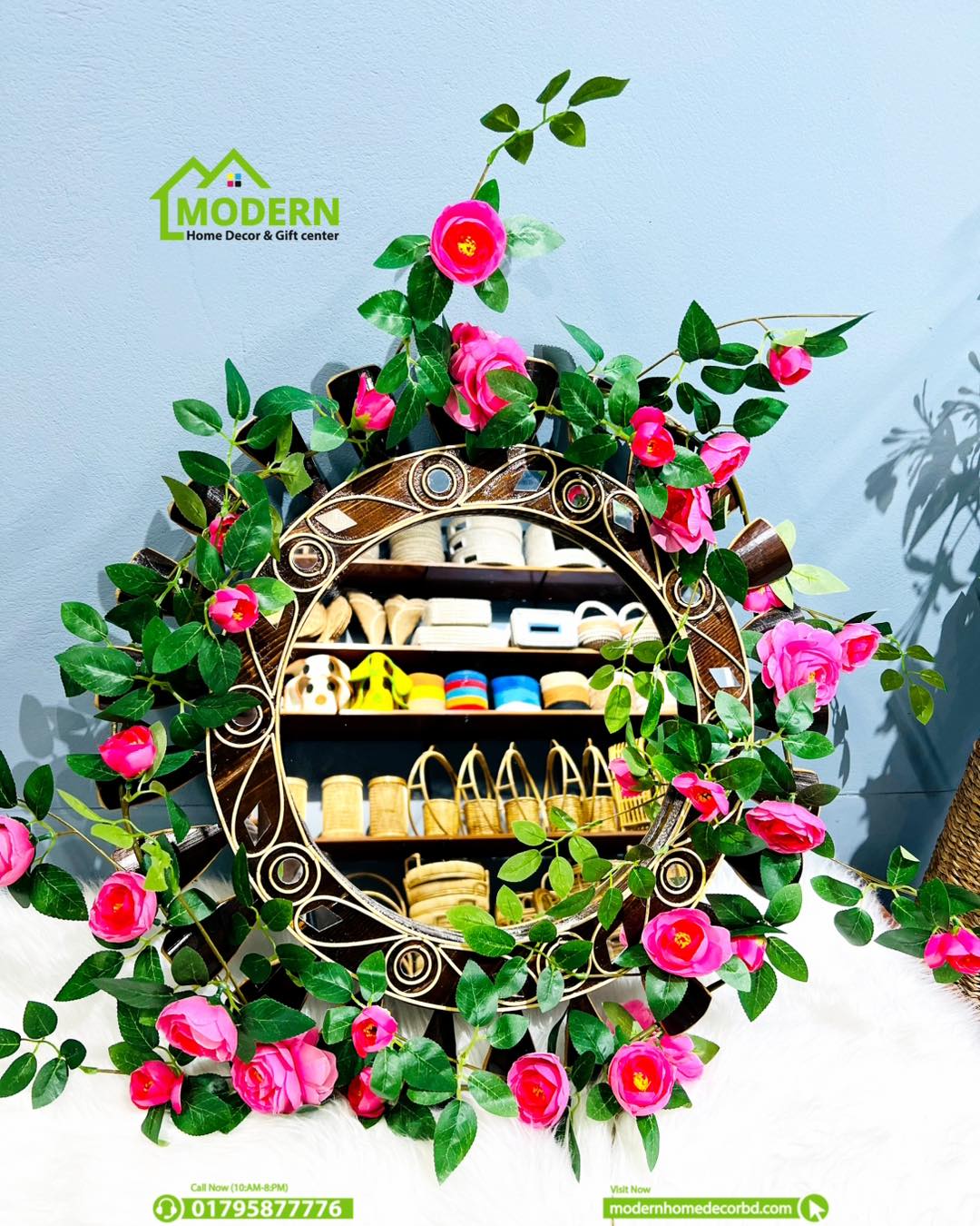 একটি সাধারণ দেয়ালকে জীবন্ত করে তুলতে আমাদের এই ডিজাইনার সানবার্স্ট মিরর উইথ রোজ ডেকোর অনন্য। কাঠের শৈল্পিক কাঠামোর সাথে প্রিমিয়াম কোয়ালিটির কৃত্রিম গোলাপের লতা আপনার ঘরের পরিবেশকে করবে আরও সতেজ ও মায়াবী।